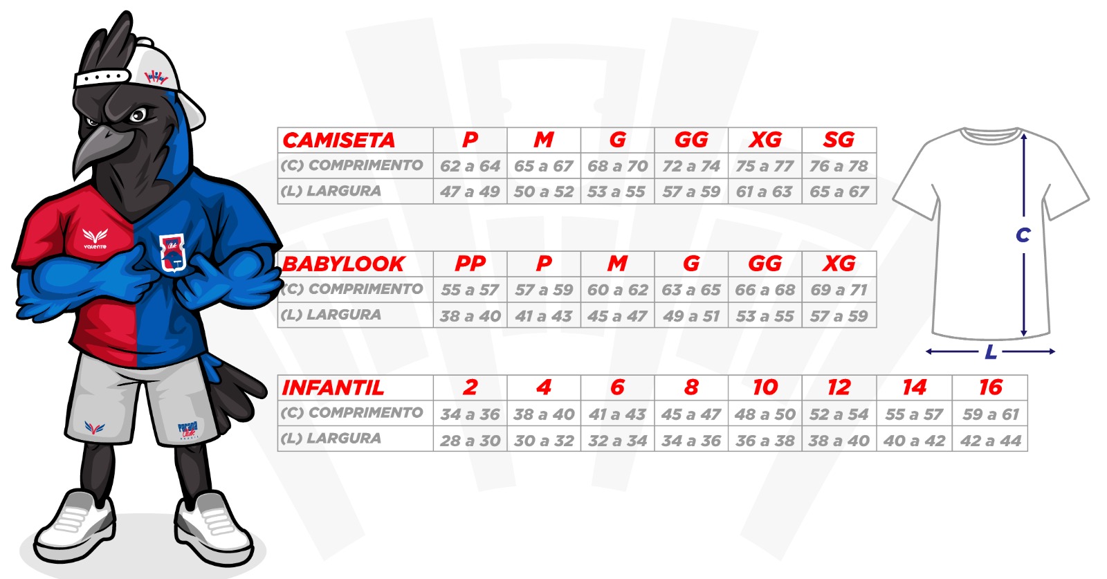 | Tamanho | P, M, G, GG, XG, SG |